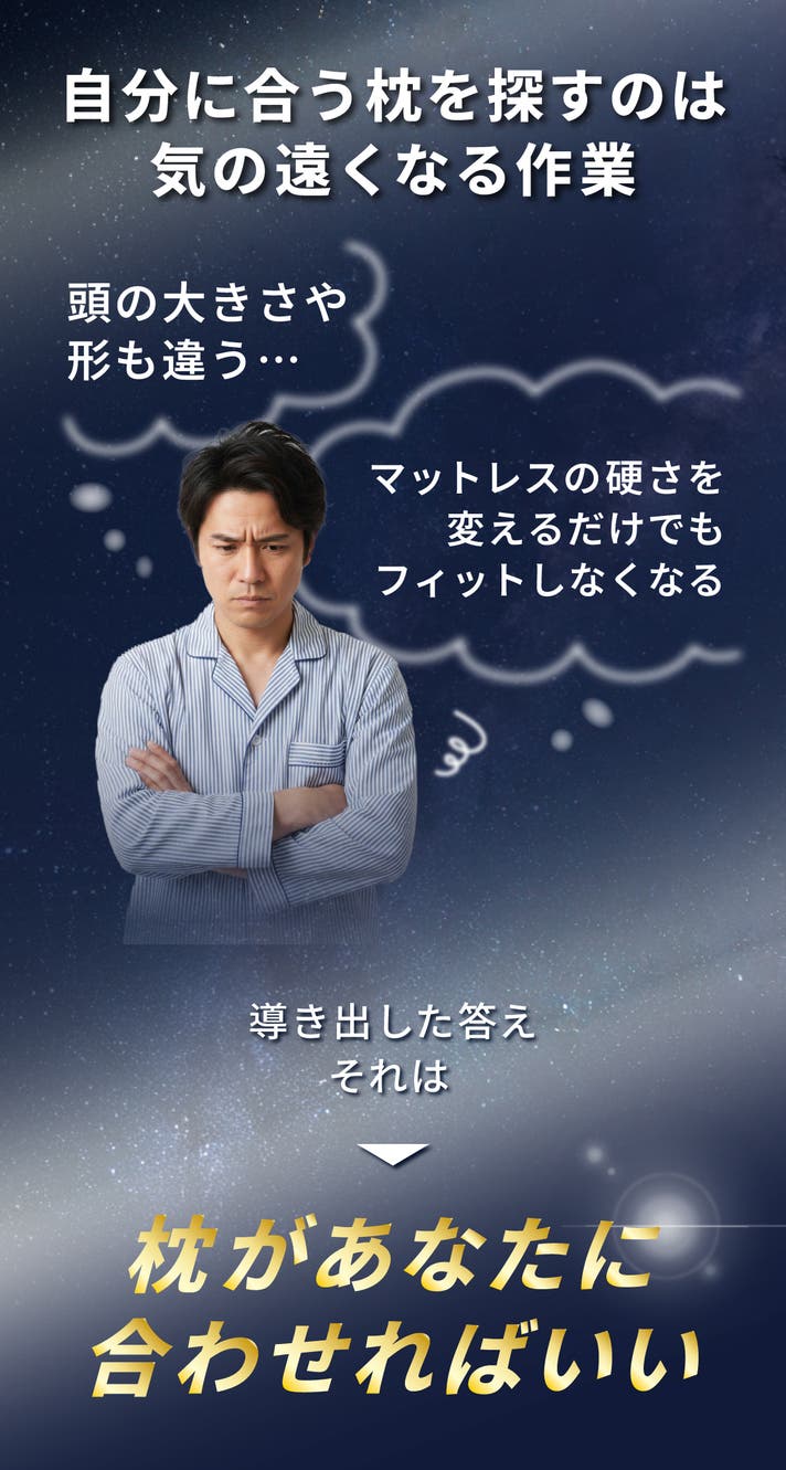 人々のまくらの悩みは尽きません。合うまくらを探すのではなく、まくらがあなたに合わせることで問題解決を図りました。