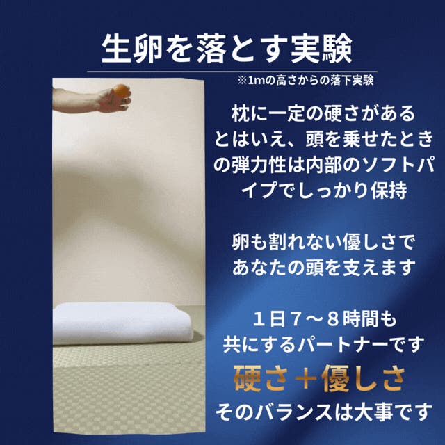 ※なお、上の動画は硬さがわかりやすいようパイプ素材が多めに入っている状態ですが、量を調整し、へこみ具合や弾力感は調整可能です。