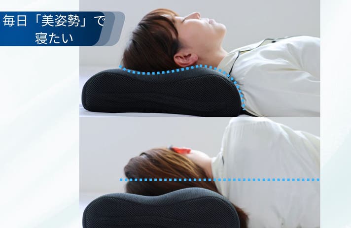 ※「美姿勢」とは、まくらの形状によって就寝中の首や背中のラインを物理的にサポートし、理想的な寝姿勢を維持することを指します。使用中の一時的な効果であり、永続的な姿勢矯正を保証するものではありません。