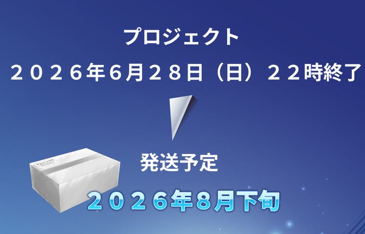 このプロジェクトはAll in型です。目標金額の達成に関わらず、プロジェクト終了日の2026年06月28日までに支払いを完了した時点で購入が成立します。