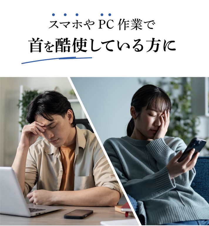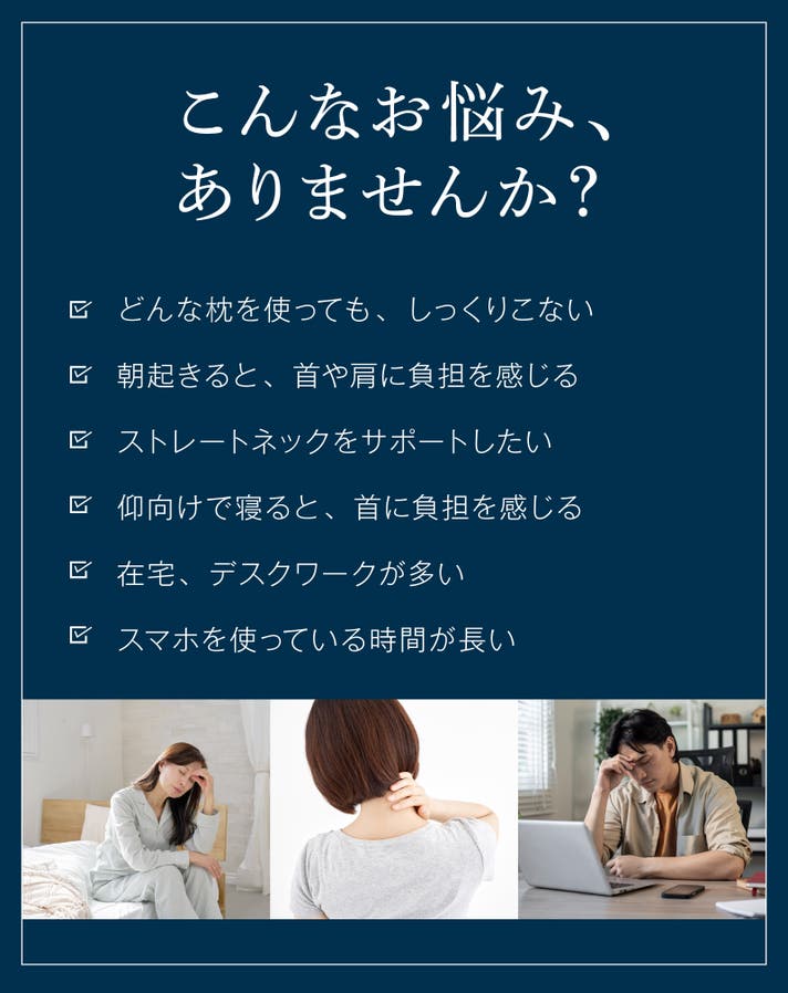- 肩甲骨までサポートする枕が、首の負担を軽減!スマホやPCを長時間操作する方におすすめです