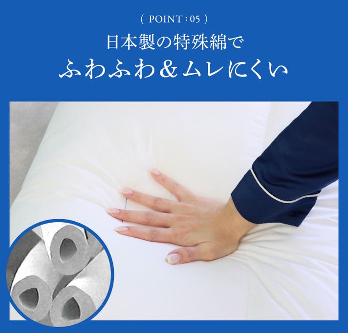 ふんわりとした柔らかさと適度な反発力で、寝姿勢をやさしく支えます。