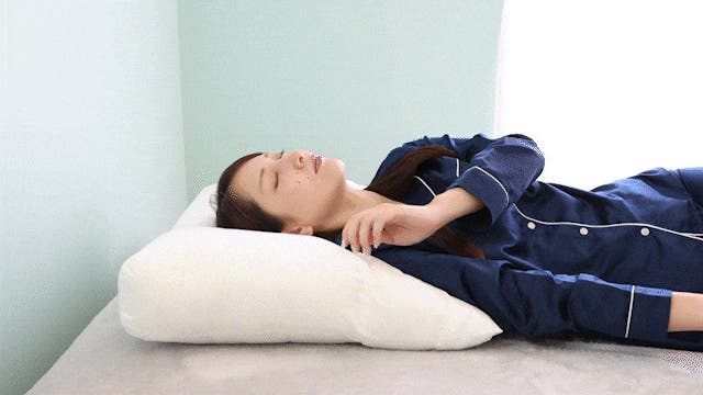 背中の生理的弯曲を枕で埋めることで、寝ている間の首の負担を軽減。