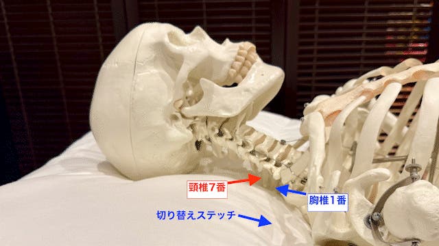 ですが『RAKU寝』は、首の付け根(頚椎7番)と背骨上部(胸椎1番)に着目。