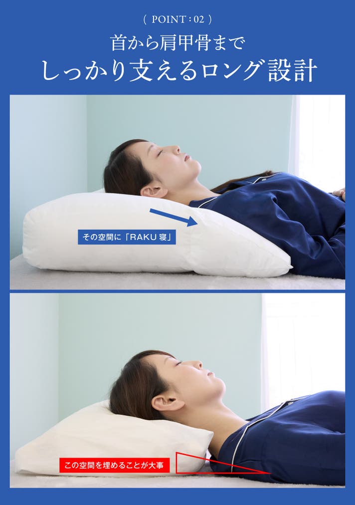 『RAKU寝』は、解剖学を応用したロングサイズ設計を採用。