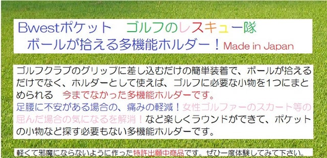 私は、兵庫県在住でゴルフが趣味の50代の男性ですが、今回、このゴルフのレスキュー隊を商品化にあたりBwestポケット(ビーウエストポケット)を起業いたしました。
