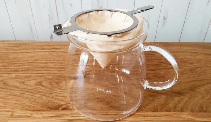 しかしこの方法では火傷のリスクが生じます。そこで、ペーパーフィルターをセットして固定する、洗う手間がかからず普段使いに便利なドリッパーを考えました。