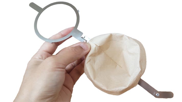 フィルターを挟む上下のリングに持ち手がついただけのシンプル構造で、簡単洗浄!