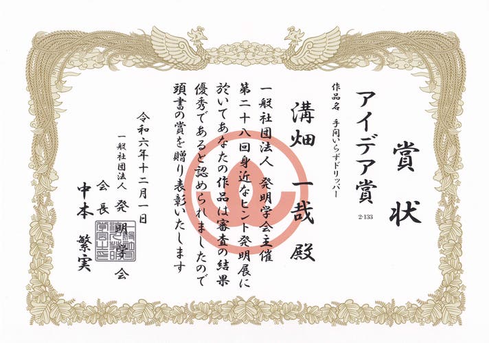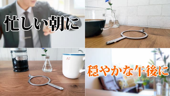 「らくらくドリッパー」は、2024年度に第28回「身近なヒント発明展」(一社)発明学会主催において、アイデア賞を受賞した「手間いらずドリッパー」を改良した商品です。コンパクトサイズの手軽さはそのままに、置き使用・手持ち使用と2通りの使い方で、異なる味わい方ができるコーヒードリッパーです。【特許出願中】
