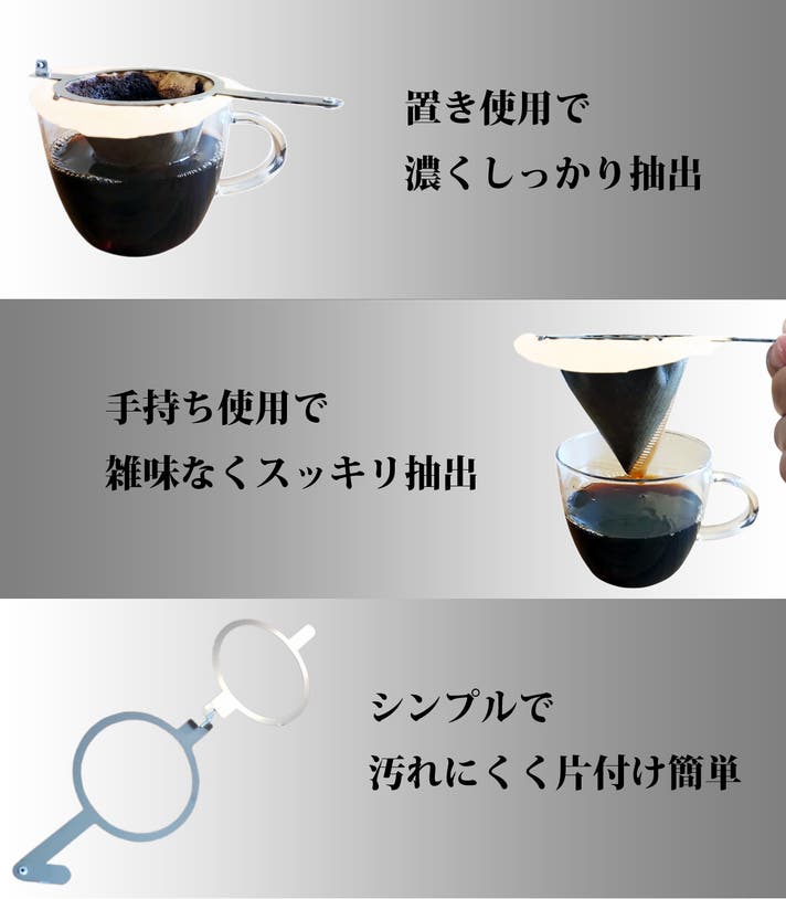 置き使用で濃くしっかり、手持ち使用で雑味なくスッキリと2つの味わい方!