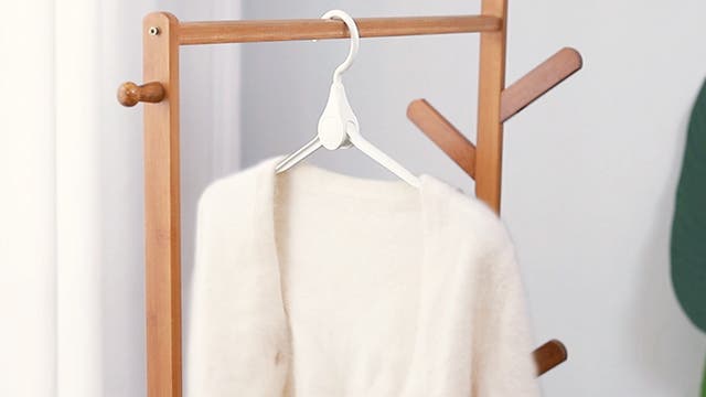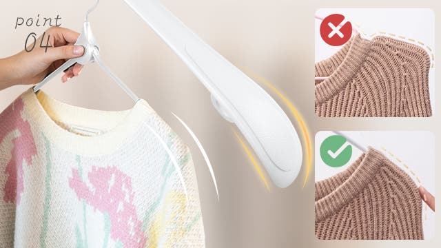 ハイネックや丸首なTシャツ、お洋服などを掛ける時に襟を伸ばすことなく掛けられます。形崩れを防止します。