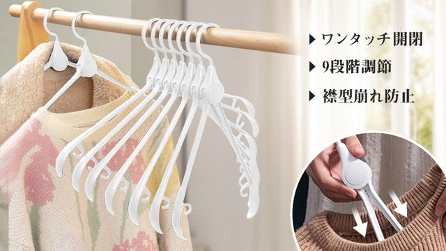 - 衣類に合わせれらる9段階角度調節肩幅!子供から大人まで服を全て対応可能!