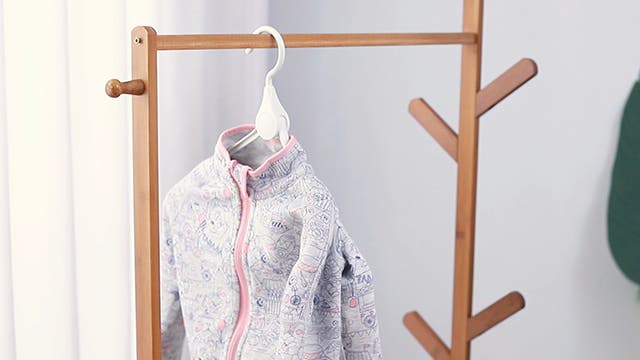 子供服を干す際はハンガーを伸ばし、袖に通すと乾きがより早くなります。