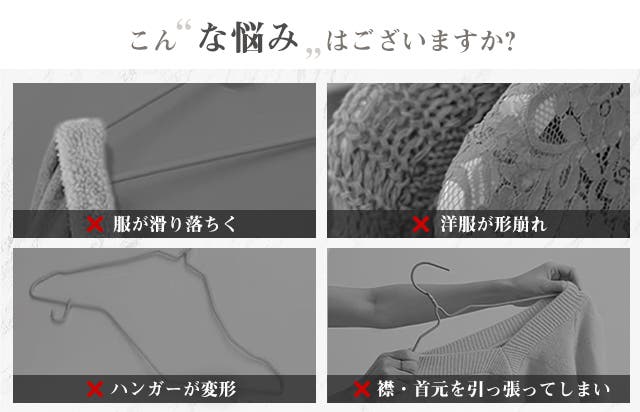 滑り止め加工を施しており、襟の開いたブラウス、キャミソールなど滑りやすい素材のトップスも美しくキープ、ずり落ちることなく安心して収納できます。