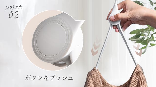 肩口の狭い洋服でも首元から簡単にハンガーを通せるので、洗濯干しの時間を短縮が可能になります。