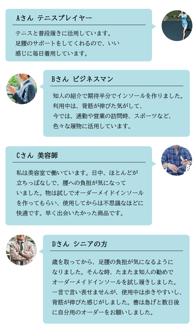 - ビジネスマンや高齢者、スポーツマンまで幅広い方からご好評のインソール!