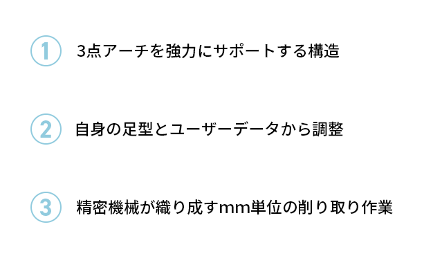 「体重がかかる位置」や「3点アーチのバランスを保つ値」を割り出します。