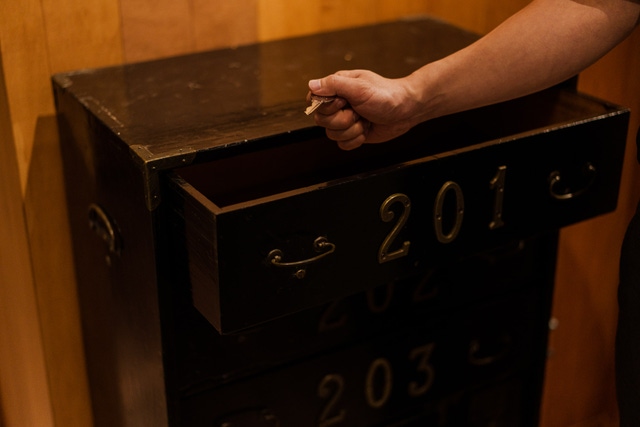 事前予約で確認していた部屋番号が書かれた棚を開けると、、