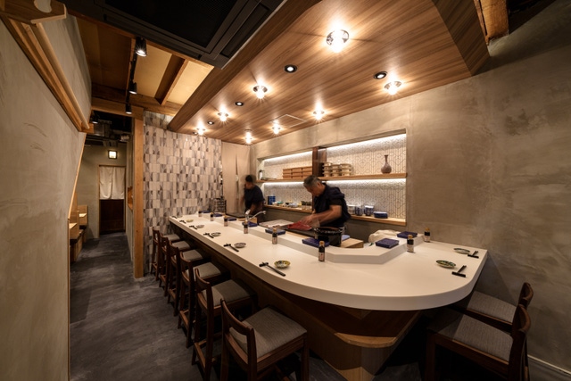 ライブ感のあるカウンターとスタッフの距離が近いテーブルで