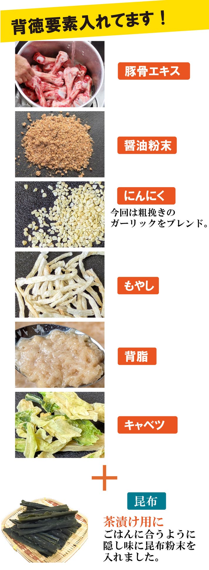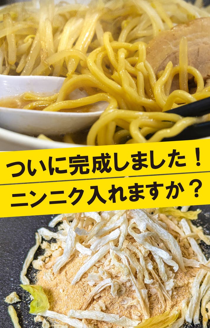 - 背徳の頂点!ヤサイ・ニンニク。背脂入りの豚骨醤油ラーメン茶漬けの素を開発しました!