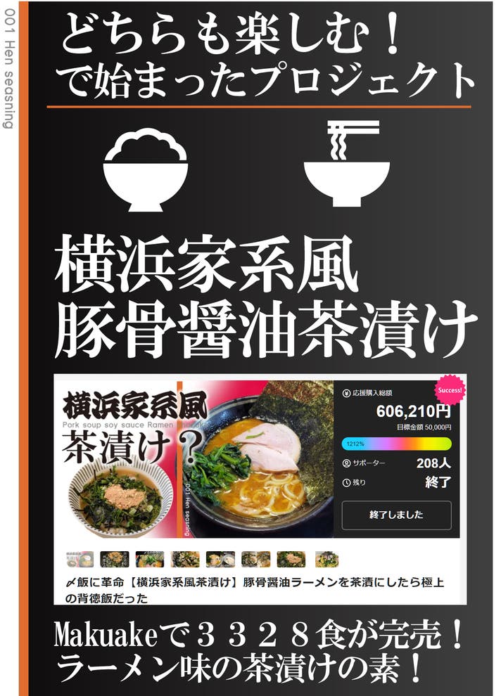 「Makuake(マクアケ)」は、実行者の想いを応援購入によって実現するアタラシイものやサービスのプラットフォームです。このページは、 フードカテゴリの 「〆飯に革命【横浜家系風茶漬け改】大好評のラー茶を液体化!旨さが爆裂アップした件」プロジェクト詳細ページです。
