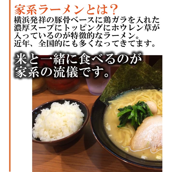 - 濃いのは正義じゃ!横浜家系をイメージした豚骨醤油味。ライスにあわない訳ないですよね?