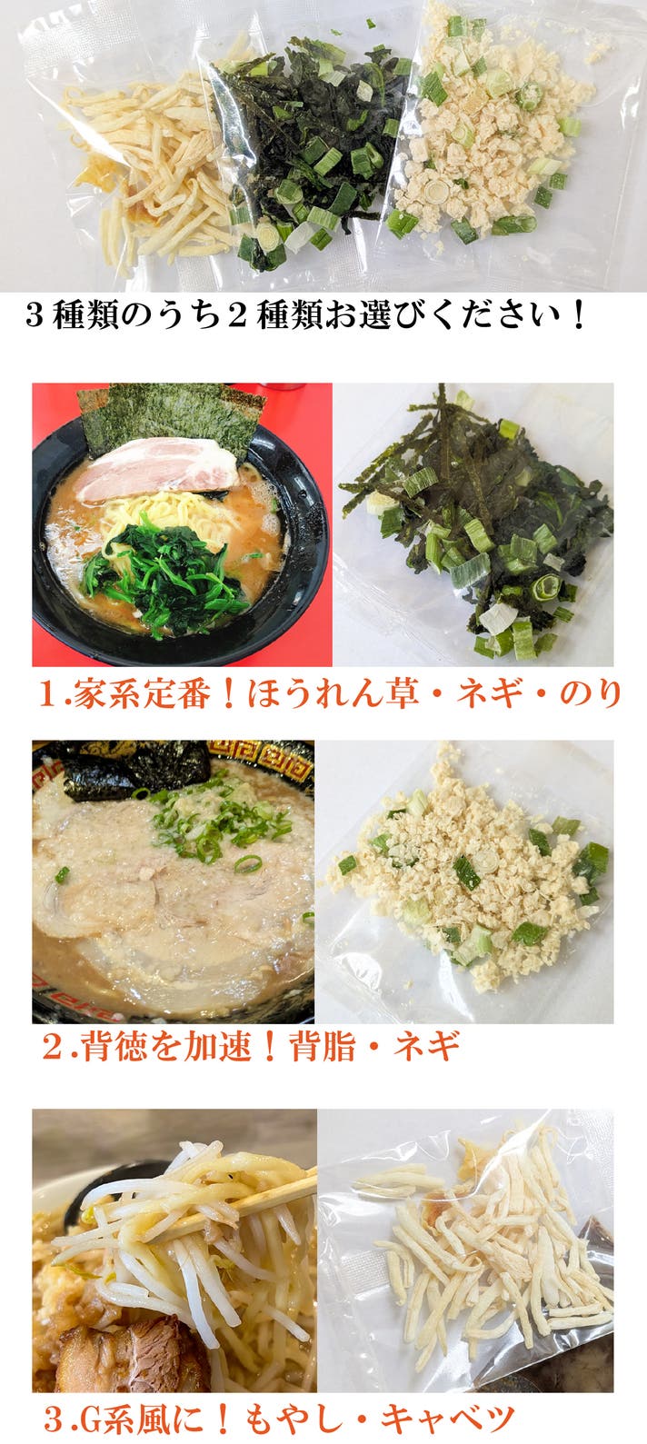 ※トッピング(8食分)を3種類の中から2セットお選びください。