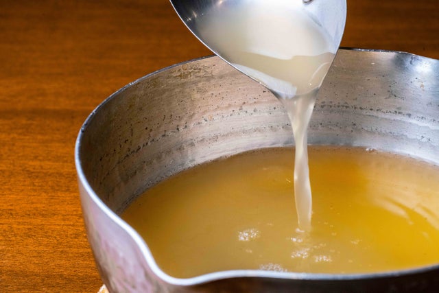 豚骨ラーメンであれば、強火で豚骨をぐつぐつ煮込み濁ったスープを作りますが、今回は鴨骨や玉ねぎを弱火でことこと約7時間煮込むことで、黄金色のスープが出来上がります。