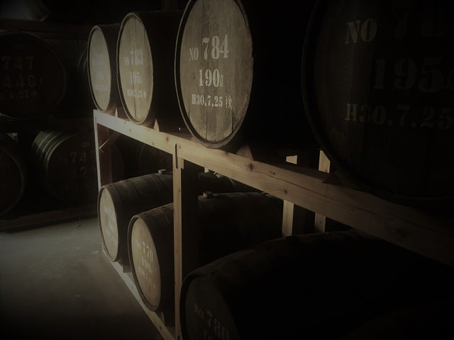 スコッチウイスキーとシェリー。焼酎以外のお酒が熟成された2種類の古樽。