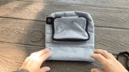 モバイルバッテリーを使用する場合は前面に収納するポケットが付いており、雨や砂などからバッテリーを守ります。