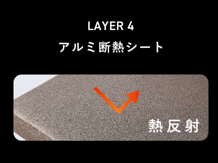 アルミが熱を反射し、内側に戻すことで効率的に保温効果を高めます。