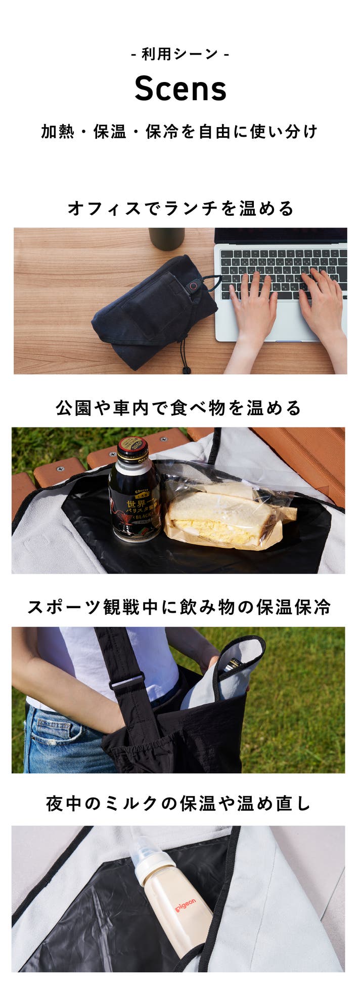 - オフィス/車内/スポーツ観戦/夜間授乳/アウトドア/災害時 いつでもどこでも温められる