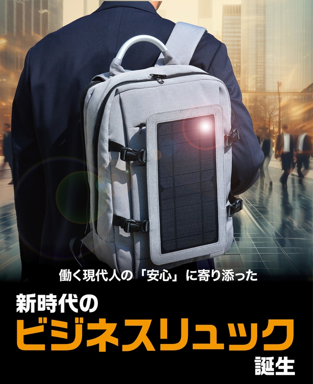 ソーラーパネルとモバイルバッテリー搭載で太陽光の力で