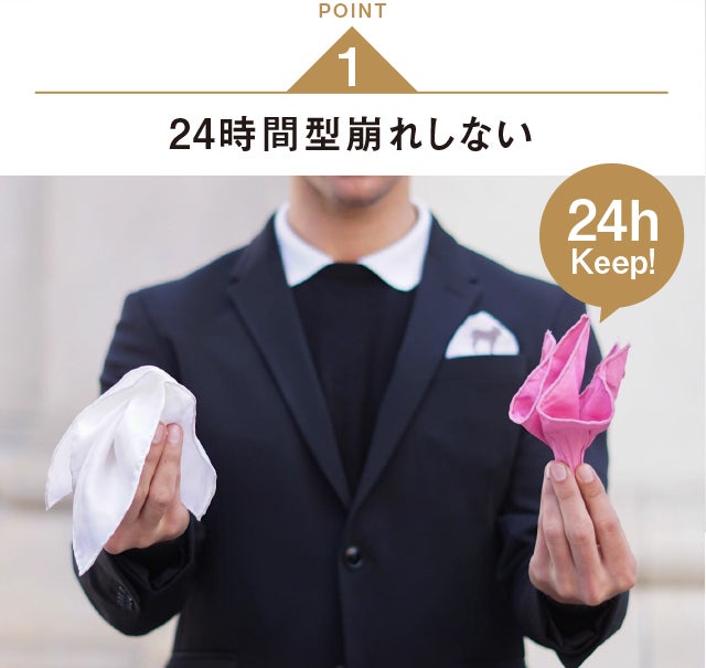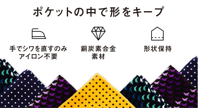 - 24時間、型崩れしない銅炭素合金素材のポケットチーフ