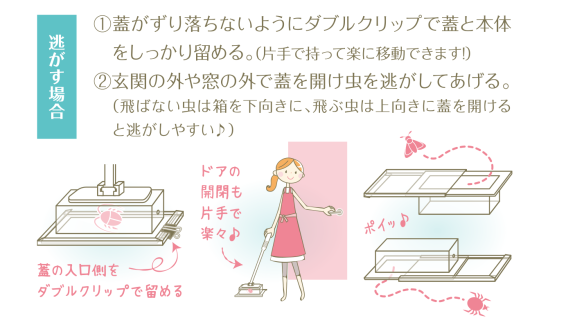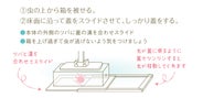 (飛ばない虫は箱を下向きに、飛ぶ虫は上向きに蓋を開けると逃がしやすい)