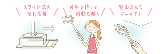 また、小さなクモなど小さな虫には箱から柄を外して箱だけで使用することもできます。