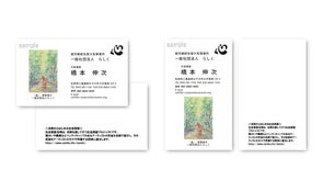 表面に障がい者アーティストの方々の作品が名刺に入った社会貢献名刺となります。タテ型、ヨコ型の選択が可能です。