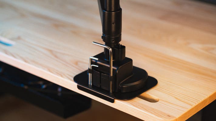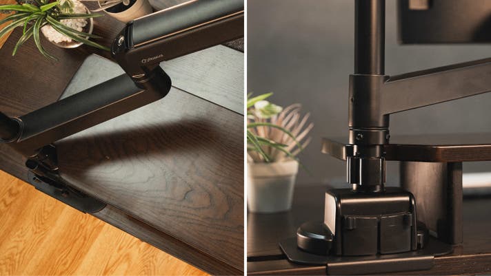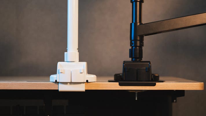 Rasical Deskは安定性を重視し、グロメット式でしっかり固定可能です。もちろんクランプ方式にも対応しており、デスクの種類や厚さに合わせて簡単に装着できます。用途や環境に応じた柔軟な設置が可能です。