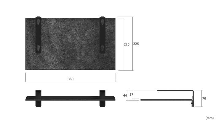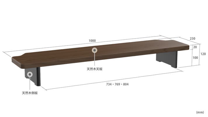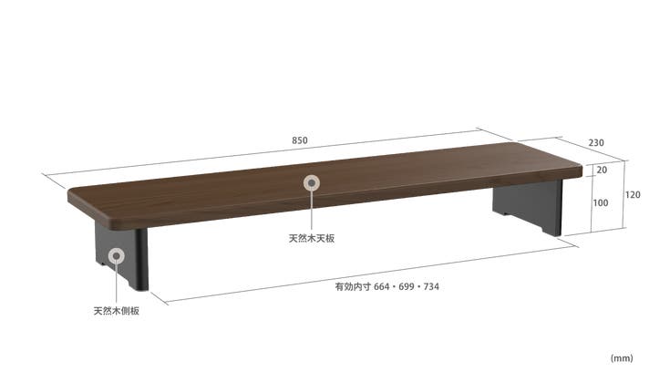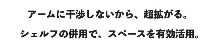 アームと干渉しない凹み構造で、デスクを拡張するカスタマイズ性抜群のシェルフ。