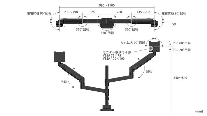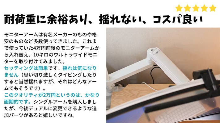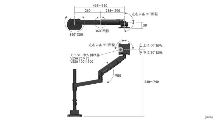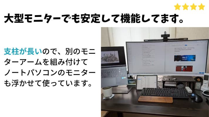 - 【モニターアーム】最大57インチ、27kgまで対応。創造力を最大限サポートできる環境を作れます