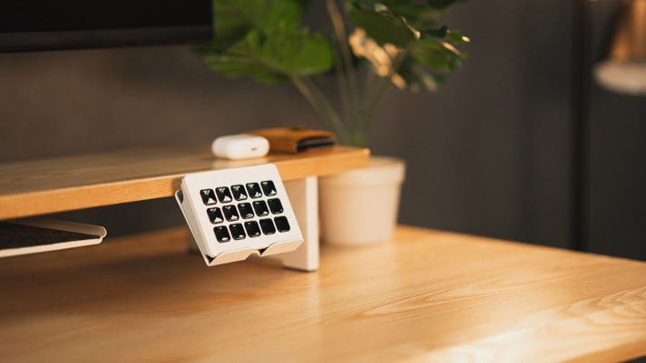 Gadget Holderを使えば、Stream Deckなどのガジェットをデスク上に置かずに収納可能です。操作性を損なうことなく、スッキリとした作業環境を実現でき、快適なデスクワークをサポートします。