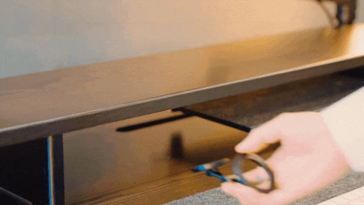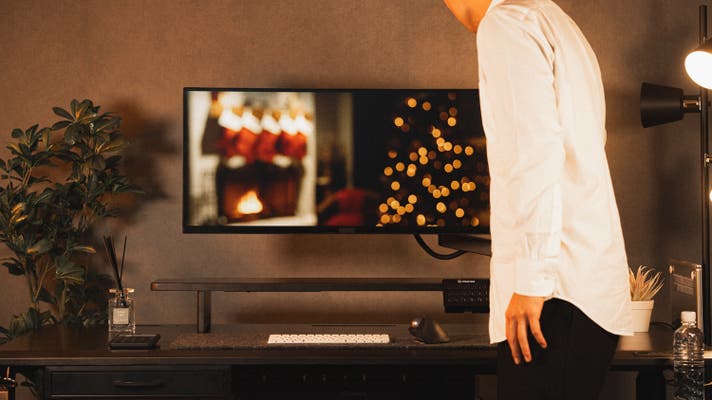 内蔵されたスライド式ケーブルカバーを活用し、煩雑なケーブルを視界からシャットアウト。モニター周りのぐちゃぐちゃケーブルはこれで解決!