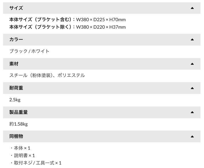 ・Rasical ガジェットホルダー ×1(シェルフ脚と同色になります)