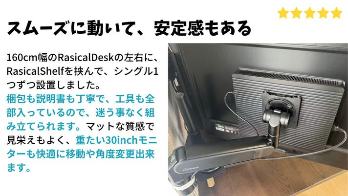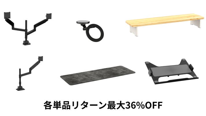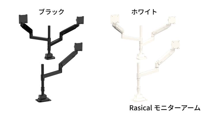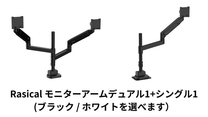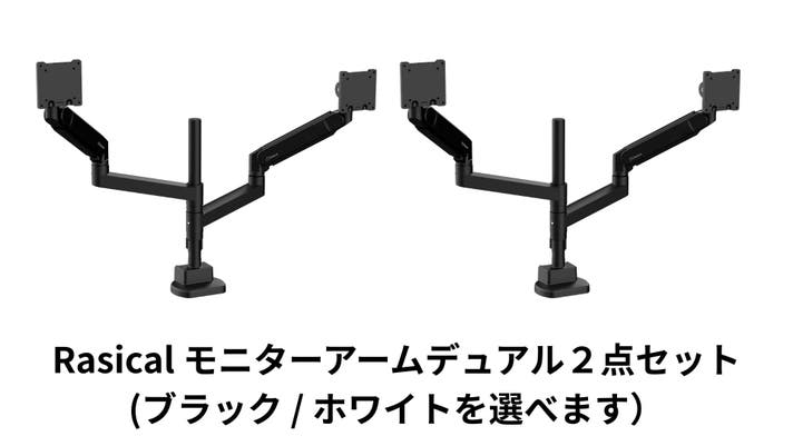 ・Rasical モニターアームデュアル×2(全色同一で、ブラック / ホワイトを選択可能)
