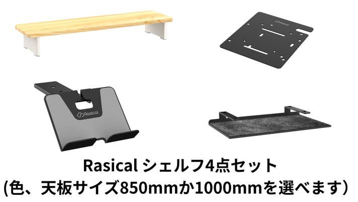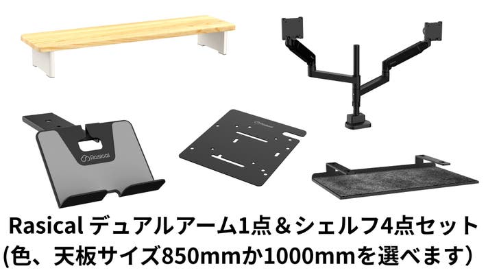 ・Rasical モニターアームデュアル ×1(シェルフ脚と同色になります)