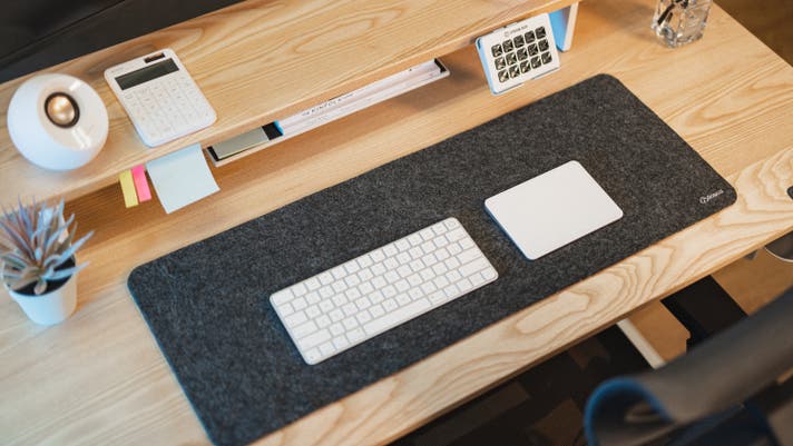 柔らかな手触りと耐久性を兼ね備えたウールに、化学繊維の絶妙な素材配合。硬すぎずざらつかないなめらかな質感がタイピングやマウス操作をスムーズにサポートします。
