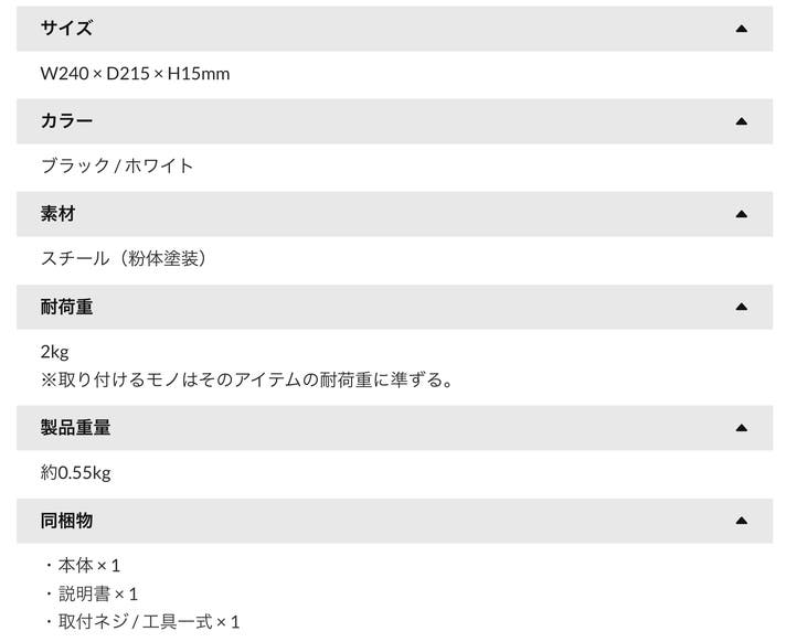・Rasical マグネット接続プレート ×1(シェルフ脚と同色になります)