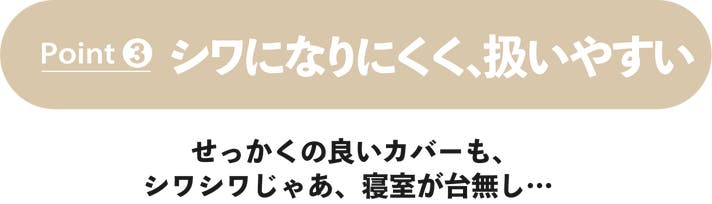 布団カバーは、肌に直接触れるもの。だからこそ、「ラクッシュ」は触れた瞬間に心地よさを感じられる、コットンライクな柔らかい生地を採用しました。