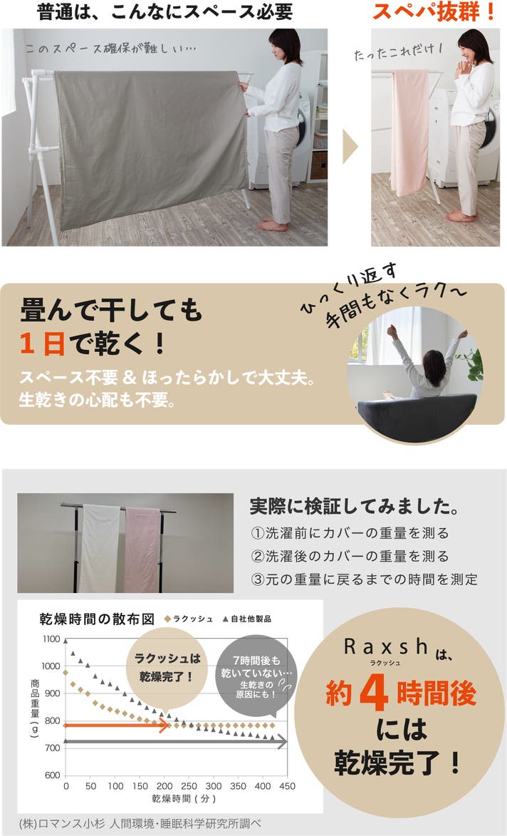 - 【乾燥機対応】面倒な「干す悩み」から解放!広げず干しても、たった約4時間で乾く、優れた速乾性!