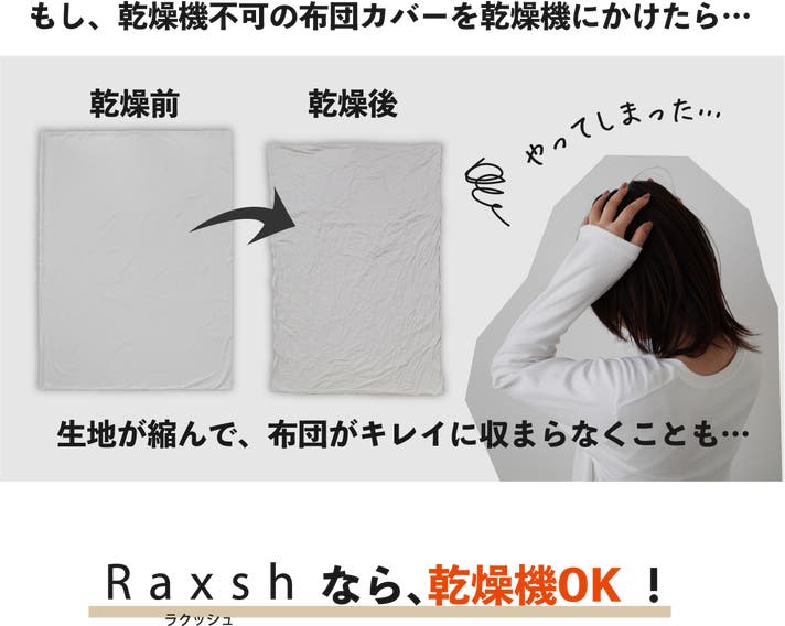 「ラクッシュ」は乾燥機対応カバー。ドラム式洗濯機で実際にラクッシュを【5回】洗濯⇔乾燥を繰り返して実験しました。